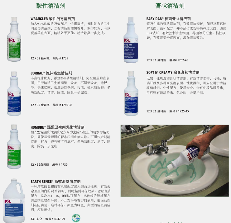 干净、卫生的卫生间反映了设施的整体清洁程度。NCL的卫生间清洁系统提供了最先进的清洁、消毒和除臭产品,以确保最大功效的控制卫生间环境中致病细菌。对于地板,墙壁,和其他表面,你也会找到一个更完整的程序。健康 经济 的清洗方案可以选择适合清洁人员使用的化学输送系统。低成本的传统包装提供最大的灵活性。稀释控制管理系统提供稀释状态下各种各样的产品,以达到最佳效果。